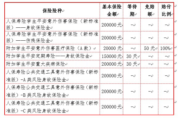 该方案涵盖意外伤害、意外医疗、重大疾病、疾病身故(定期寿险)和交通意外等能够给学生家庭和学校处理突发事件带来较大冲击的保险责任,并具有保额高、服务好等特点,是学校学生公费医疗体系的有效补充。