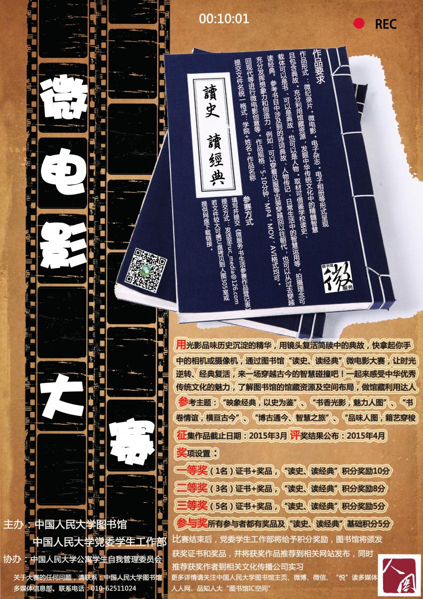 4. “读史读经典”微电影大赛积分奖励限于2014级参赛本科生。