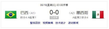 第4、5位:18日3:00世界杯巴西vs墨西哥比分0:0,取0、0。