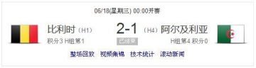 第2、3位:18日0:00世界杯比利时vs阿尔及利亚比分2:1,取2、1;