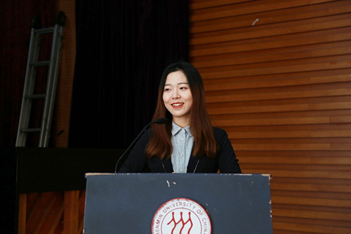 法学院2014级本科生刘思伊作为本科获奖学生代表发言,她对光华教育基金会的支持和学校的栽培致以诚挚谢意,并表示会将这份荣誉化作不竭的动力,向着新的征程砥砺前行。