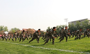 4月15日,中国人民大学春季运动会开幕式在田径场上举办,经过近一年的军事训练,“红船领航”计划党员先锋营学员组成队列方阵和擒敌拳方阵,参加入场式,展示军事训练成果。