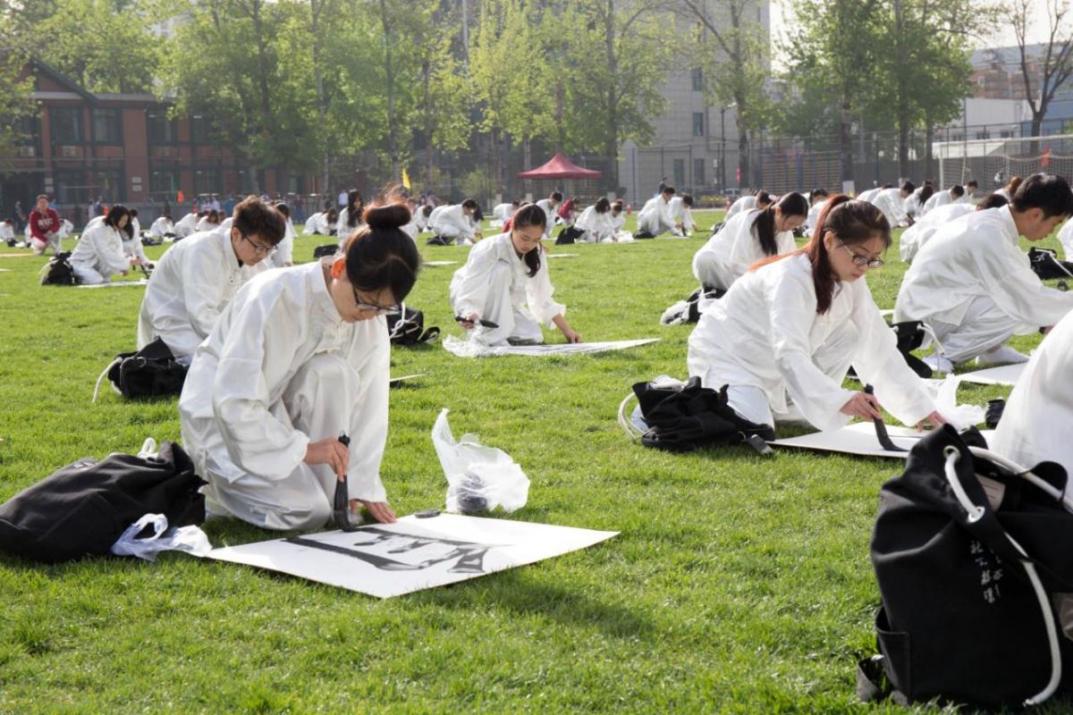 此次书法研习集体展示活动,是我校推进“一拳一泳一书法”学生综合素质培养计划、大力弘扬中华传统文化的一项重要举措,也是我校开设全校书法选修课、积极开展书法研习活动的一次阶段性成果展示。300名师生从全校学生书法研习教学、活动中选拔产生,分为12个方阵以不同书法笔体书写“社会主义核心价值观”并由艺术学院党委书记郑晓华书写“中国梦”核心主题。