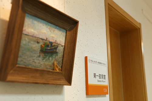 在我校心理健康中心的走廊上,展出了一批由人大学生自己创作的油画。这批油画的作者是我校2012级油画专业油画工作1室和2室的余春等同学,油画主题为“从苏州到苏州街”。