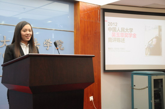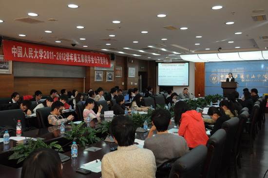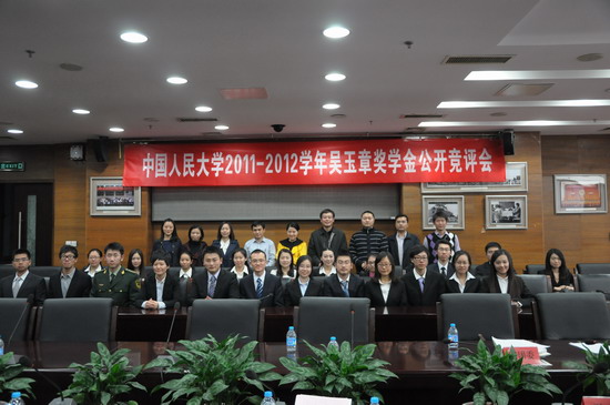 10月31日,中国人民大学2011-2012学年吴玉章奖学金公开竞评会在明德法学楼601会议室举行。
