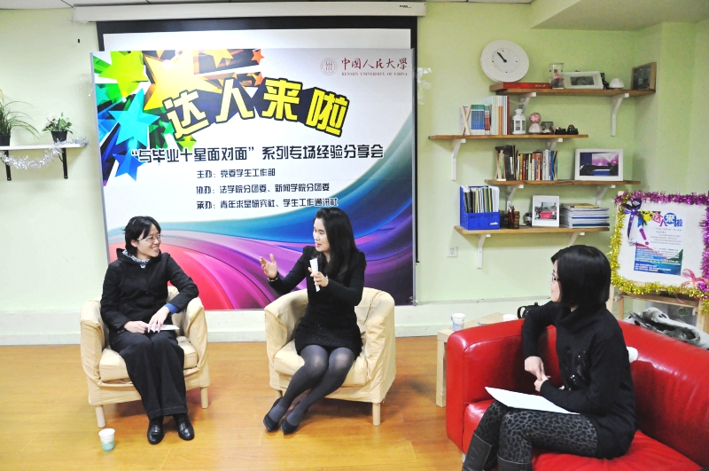 “达人来啦——‘与毕业十星面对面’学术专场经验分享会”由党委学生工作部主办,法学院、新闻学院分团委协办,青年求是研究社和学生工作通讯社承办,同时,为保证覆盖面更广,更好地满足不能来到活动现场的同学的学习需求,本次活动全程录制视频,并在活动结束后挂在“新生入学导航网”和“乐学网”网站上供同学们观看。为使活动效果更为活泼生动、提问内容更有针对性,今年我们首次采用嘉宾访谈式的活动形式