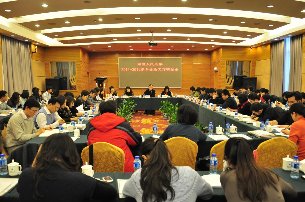 为进一步加强和改进我校学生工作,2012年1月12日,中国人民大学2011年度学生工作研讨会在湖北大厦召开。校党委副书记马俊杰出席会议并作重要讲话。各学院分党委、分团委负责人和学生工作部、校团委全体人员参加会议,就学生成长发展服务体系建设的现状和设想、学生工作队伍建设、境外交流期间学生管理等重要议题进行了交流研讨。会议由学生工作部部长张晓京主持。