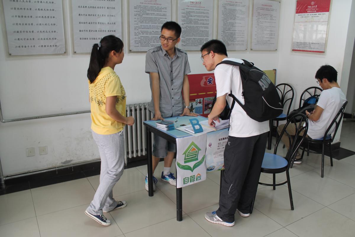 当天中午12点整,自管会东风-红楼社区服务队、品园社区服务队和知行社区服务队的队员们分别在各自的社区和公寓设立服务台,向同学们介绍自管会的工作,发放公寓生活常用联系方式,讲解遇到社区和公寓生活问题和困难时的解决办法,同时记录同学们对公寓建设、管理和服务工作的意见和建议。